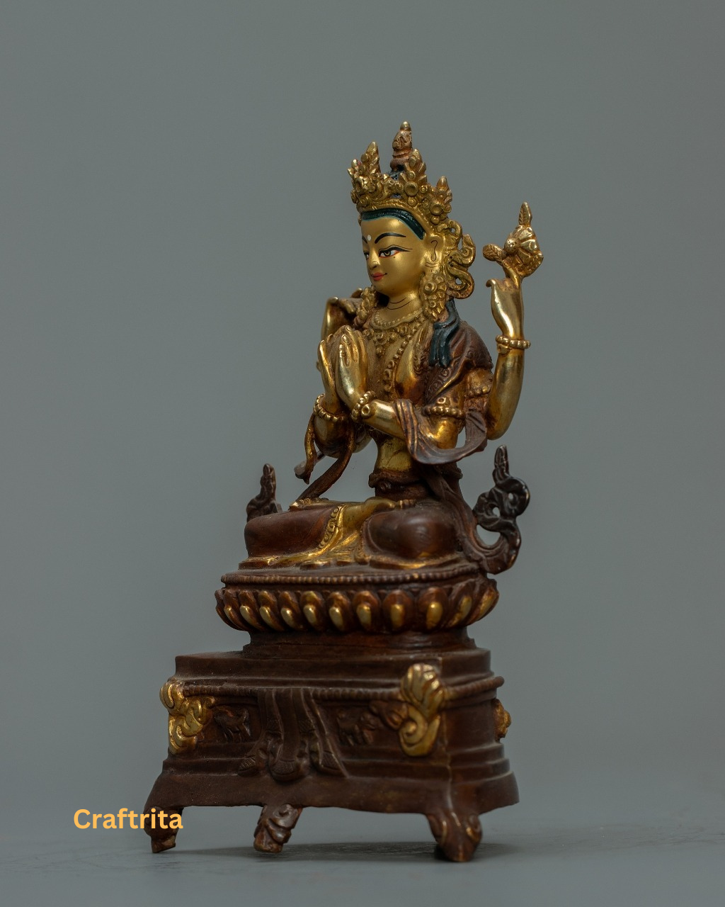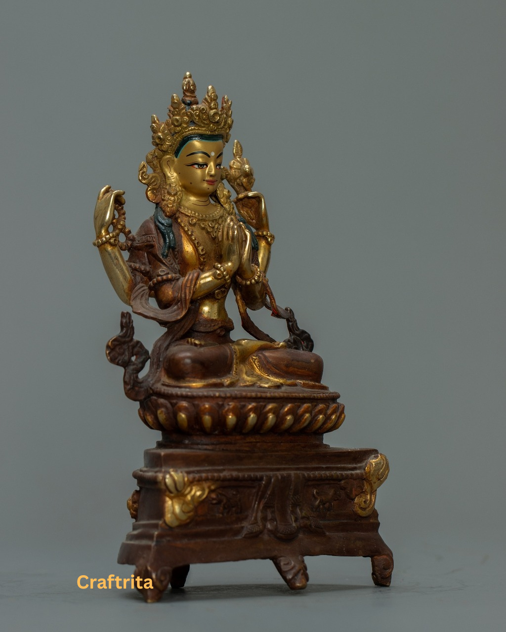 Handcrafted Chenrezig (Avalokiteshvara) Statue – Copper with 24K Gold Plating | Tibetan Bodhisattva of Compassion