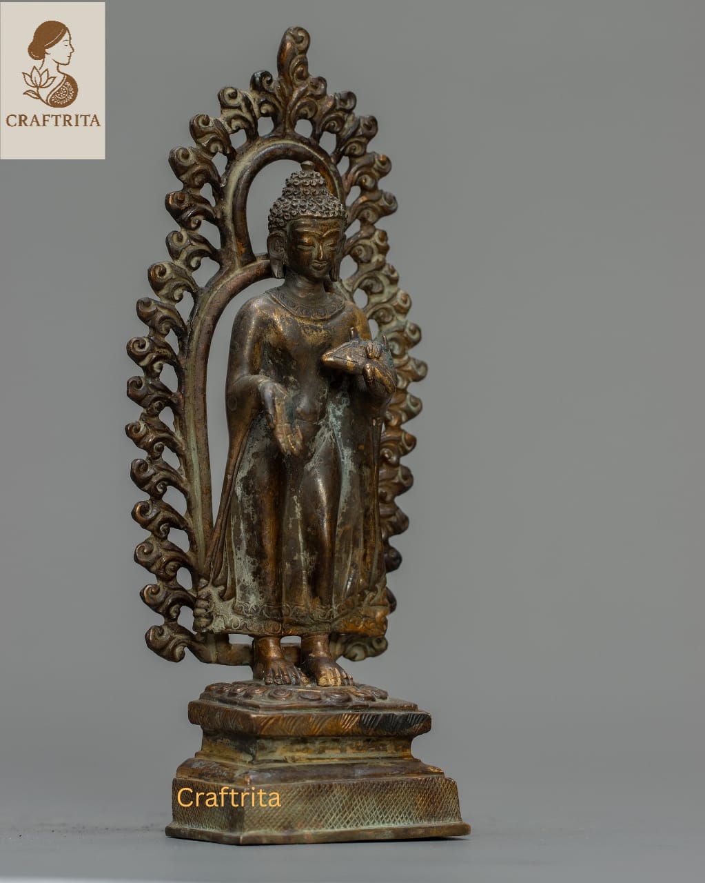 Enhance your space with the serene presence of the Dipankara Buddha, symbolizing enlightenment, wisdom, and spiritual guidance. This beautifully handcrafted statue features an antique finish in bronze and copper, capturing the timeless elegance of traditional Buddhist art. It is perfect for meditation, personal altars, or as a meaningful spiritual decor piece.