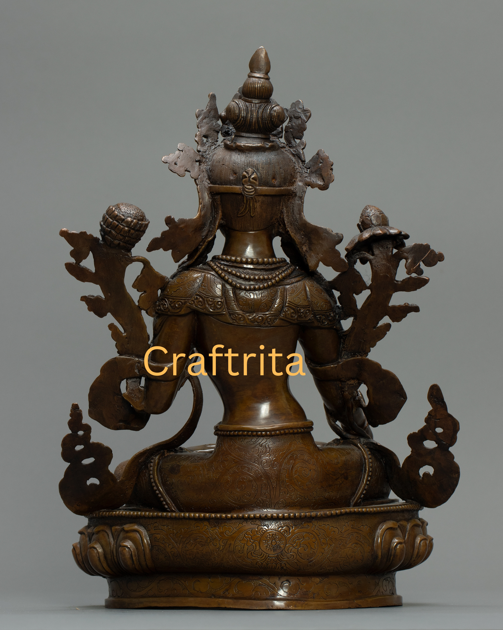 Green Tara Statue 3.1kg – Hand-Carved Oxidized Metal Sculpture | Tibetan Buddhist Deity Idol for Home Decor
