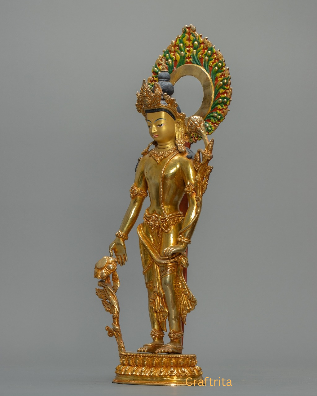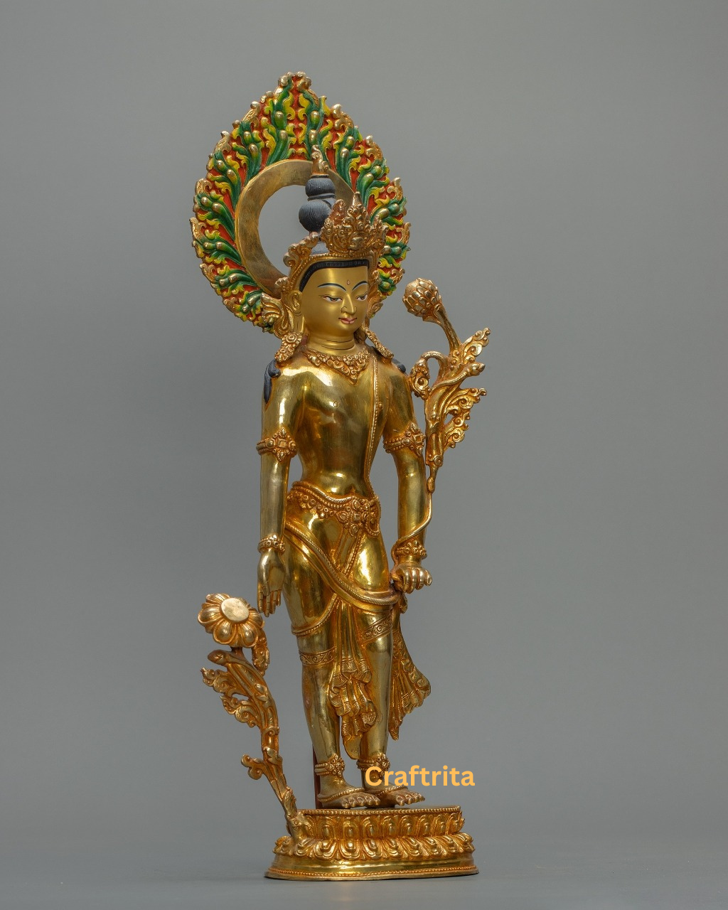 Made with a copper body and adorned with 24K gold-plated fire gilding, this sacred statue radiates divine energy and showcases fine craftsmanship, making it a meaningful centerpiece for meditation, personal altars, or spiritual décor.