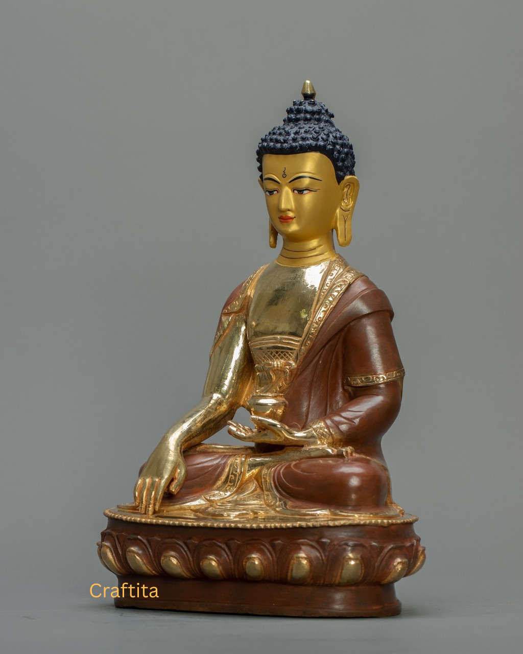 Invite peace, wisdom, and spiritual harmony into your home with this exquisitely handcrafted Shakyamuni Buddha statue, representing the historical Buddha who attained enlightenment and embodies serenity, compassion, and inner balance. Crafted with a copper body and adorned with 24K gold plating, traditional fire gilding, and acrylic painting, this sacred statue radiates divine energy and artistic elegance, making it a meaningful centerpiece for meditation spaces, altars, or spiritual dΓ©cor.