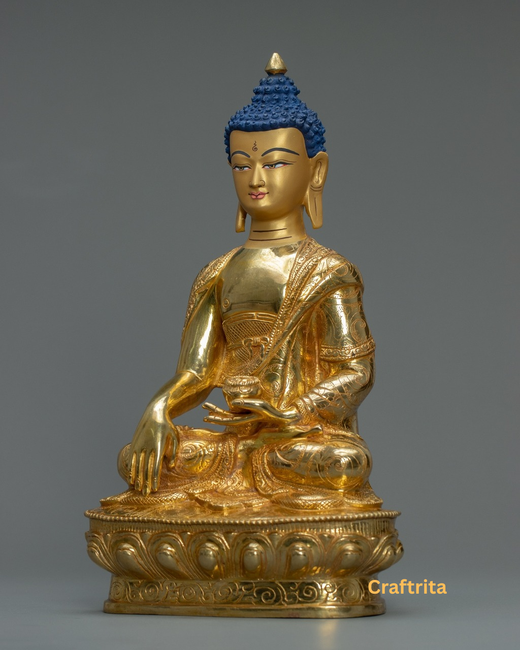 Expertly made from a solid copper body and finished with 24K gold plating by traditional fire gilding, it radiates sacred energy and timeless elegance. The intricate detailing highlights the mastery of Nepali craftsmanship, ensuring each piece is unique and truly special.
