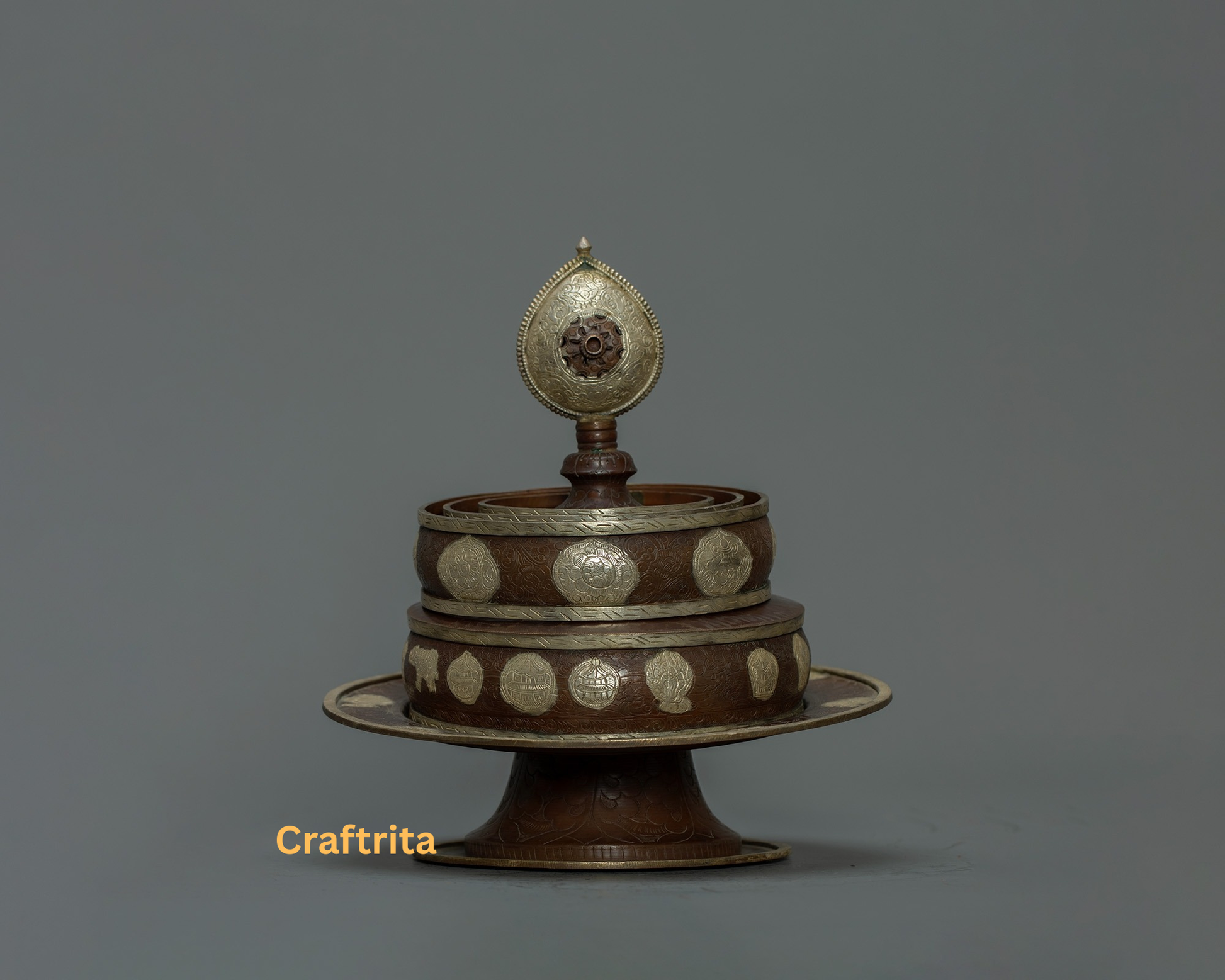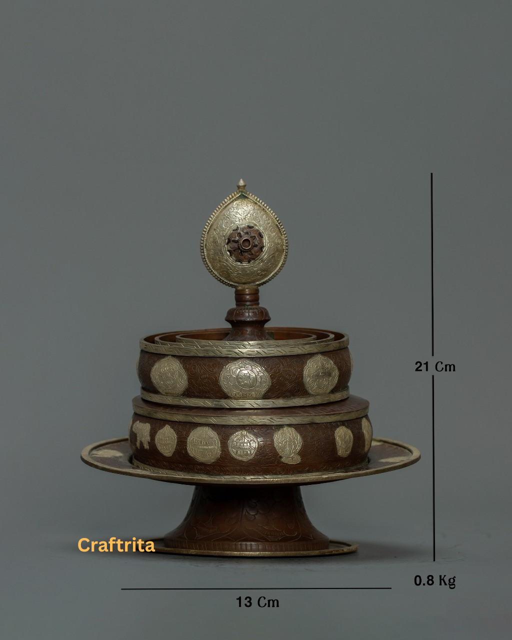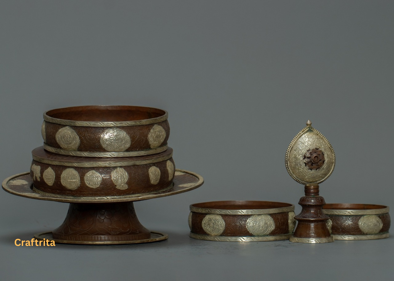 Tibetan Offering Mandala Set – Handmade Copper & Silver-Plated Ritual Art | Nepalese Spiritual Decor