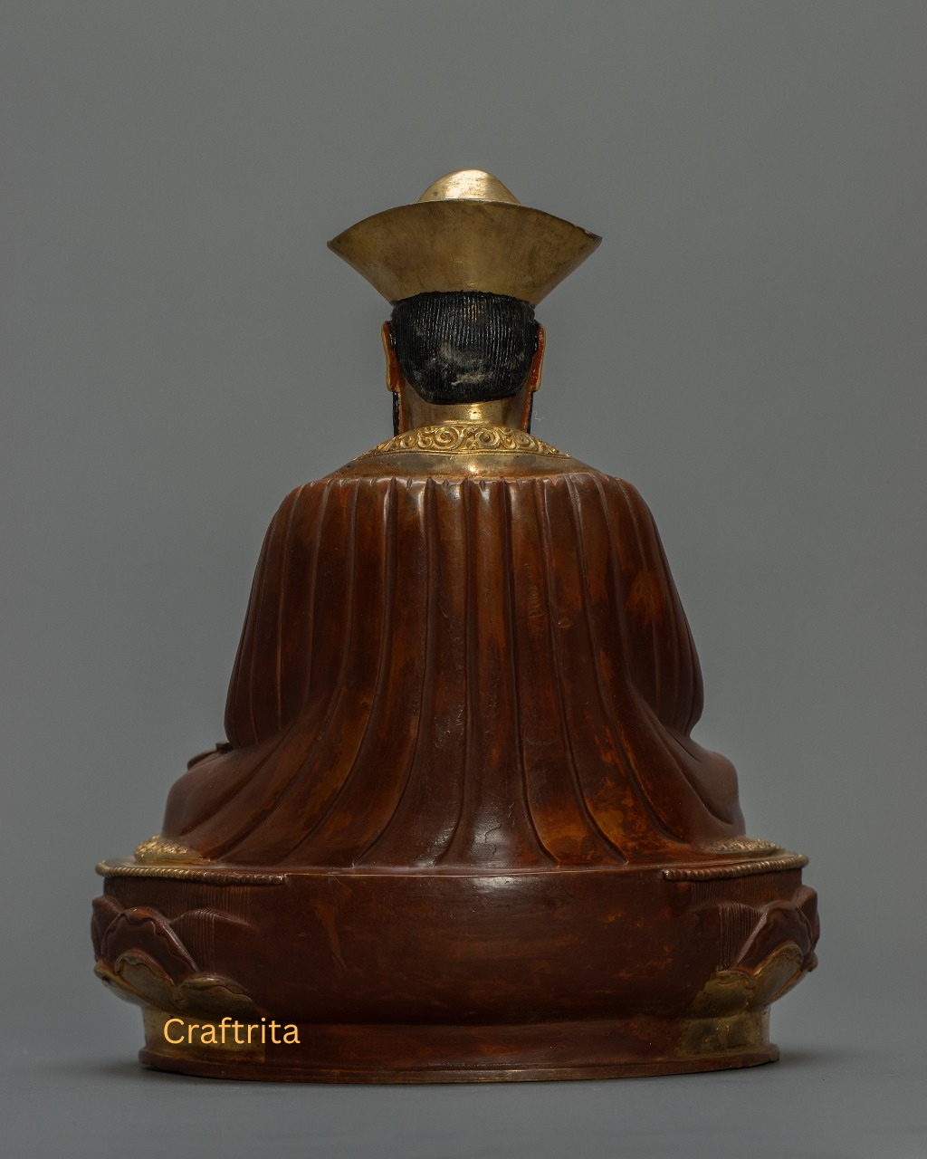 Zhabdrung Rinpoche Statue 3.8 kg – Copper Body with 24K Gold Plated Fire Gilding & Acrylic Painting | Handmade Tibetan Buddhist Deity for Spiritual Home Decor